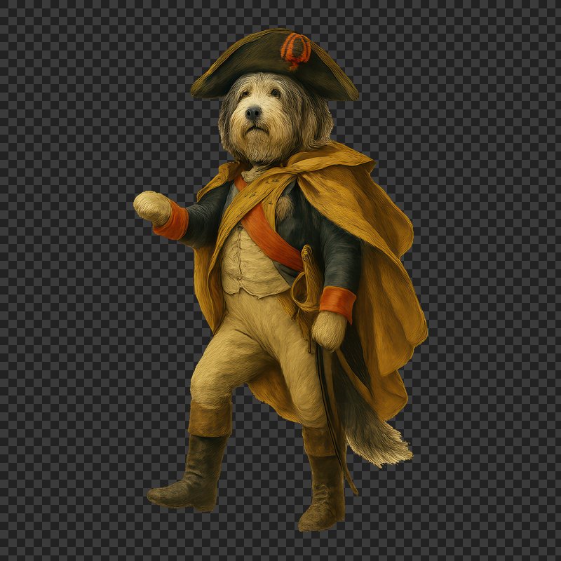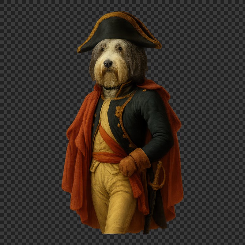 PNG Napoleon dog in historical attire https://www.rawpixel.com/image/18393735/png-napoleon-dog-historical-attireView license