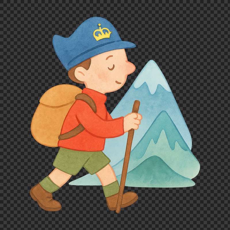 PNG Child hiking mountain adventure illustration. https://www.rawpixel.com/image/18962244/png-child-hiking-mountain-adventure-illustrationView license