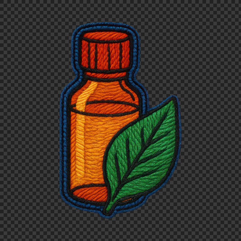 PNG Embroidered bottle with leaf https://www.rawpixel.com/image/21320913/png-embroidered-bottle-with-leafView license