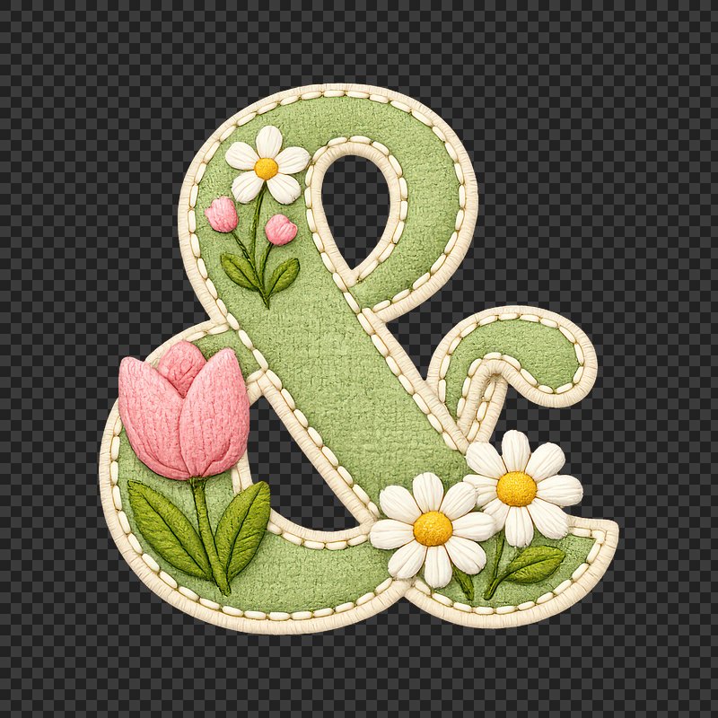 Floral embroidered ampersand design. https://www.rawpixel.com/image/25602291/floral-embroidered-ampersand-designView license