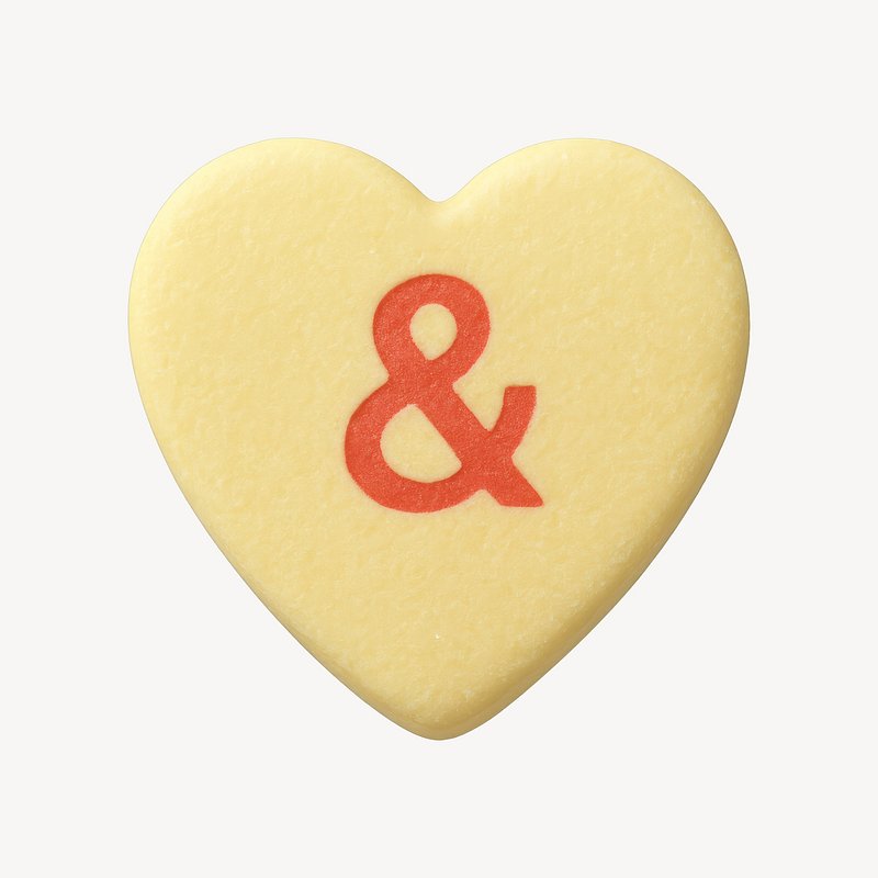 Heart-shaped candy with ampersand. https://www.rawpixel.com/image/24265539/heart-shaped-candy-with-ampersandView license
