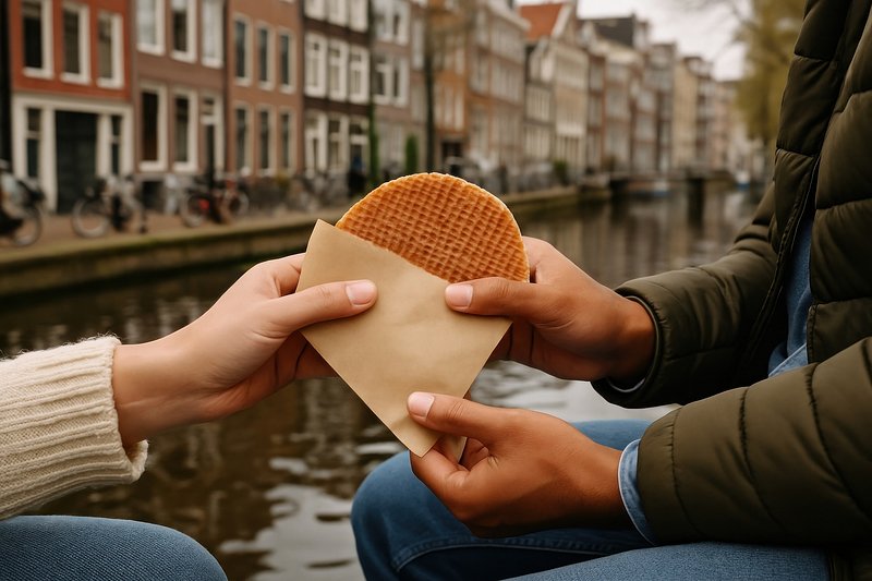 Sharing stroopwafel by canal. https://www.rawpixel.com/image/17472713/sharing-stroopwafel-canalView license