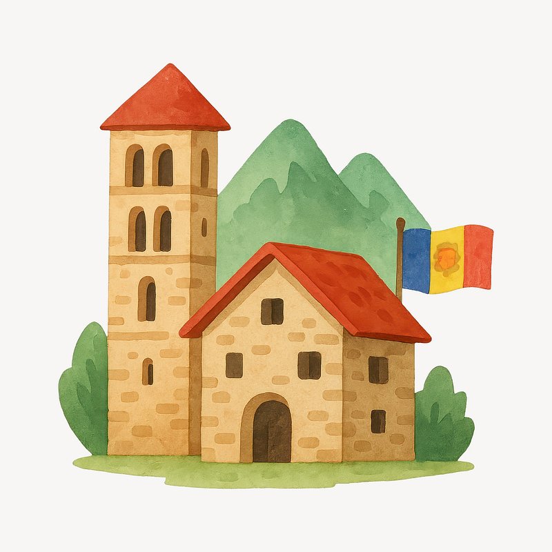 Charming Andorran village illustration. https://www.rawpixel.com/image/19362431/charming-andorran-village-illustrationView license