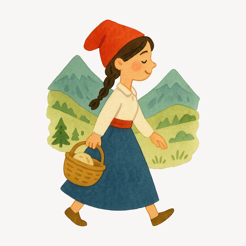 Cartoon girl with basket walking. https://www.rawpixel.com/image/20300645/cartoon-girl-with-basket-walkingView license