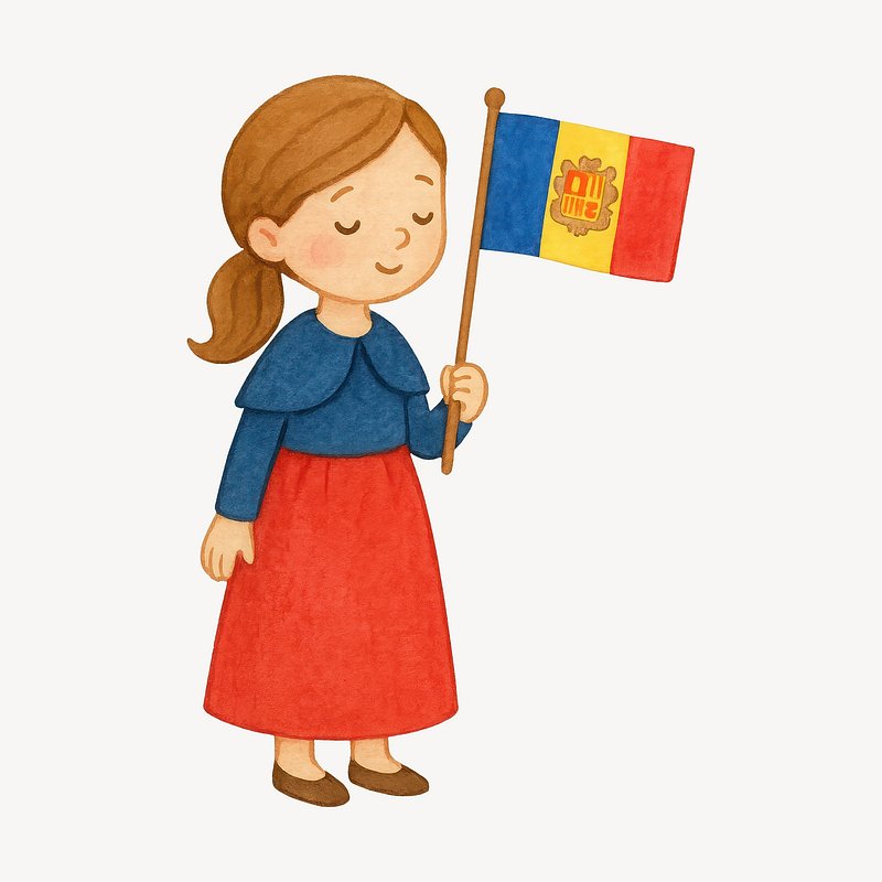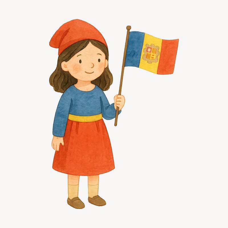Cartoon girl holding Andorra flag. https://www.rawpixel.com/image/19238457/cartoon-girl-holding-andorra-flagView license