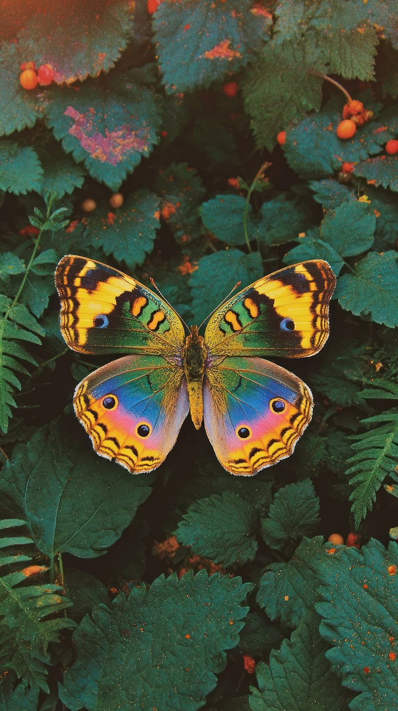 Vibrant butterfly amidst lush foliage mobile wallpaper https://www.rawpixel.com/image/25778365/vibrant-butterfly-amidst-lush-foliage-mobile-wallpaperView license