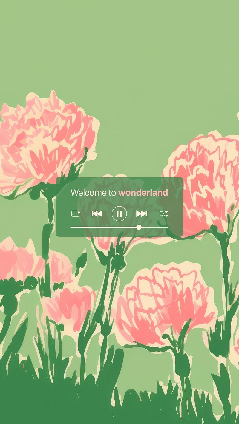 Pink flowers on a green background create a whimsical wonderland. The floral design adds a dreamy, serene touch, inviting… https://www.rawpixel.com/image/18305147/image-wallpaper-mobile-backgroundView license