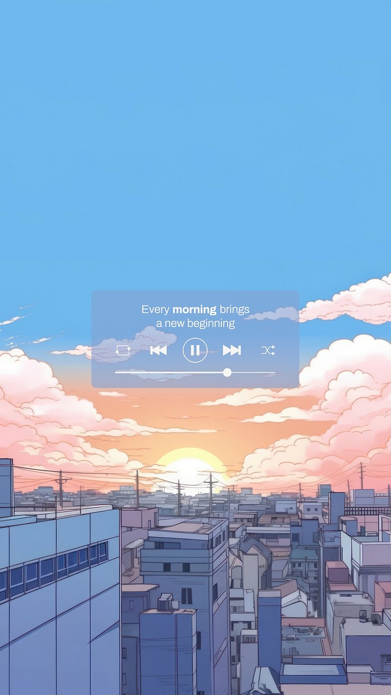 Anime cityscape at sunrise, featuring a serene sky and vibrant clouds. A music player overlay adds a modern touch. Anime… https://www.rawpixel.com/image/18305153/image-wallpaper-mobile-iphoneView license