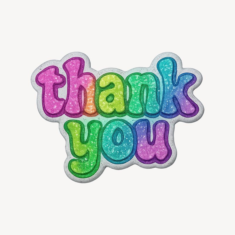 Colorful glittery thank you https://www.rawpixel.com/image/24740098/colorful-glittery-thank-youView license