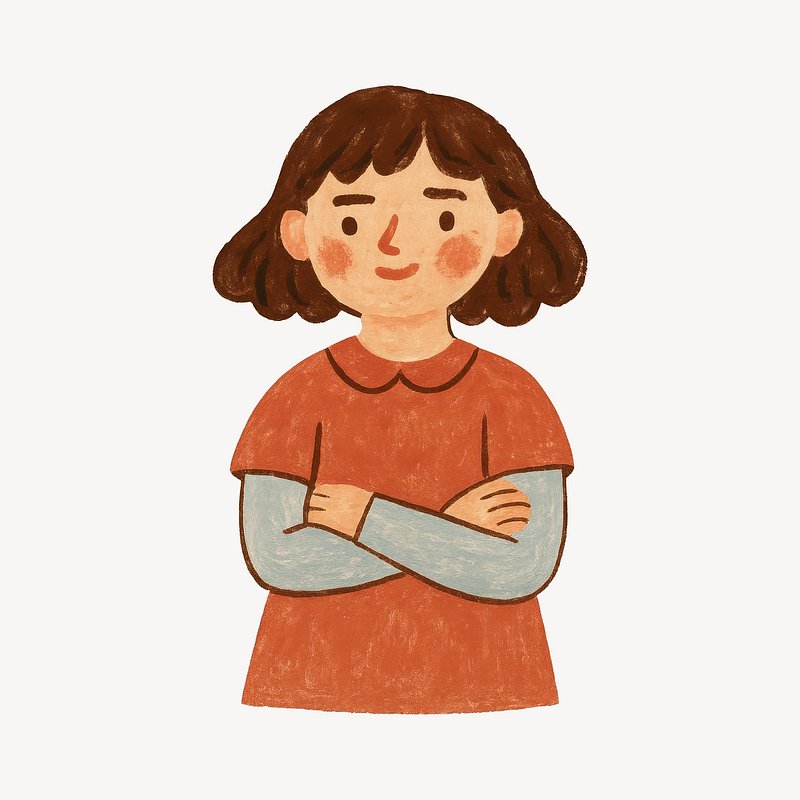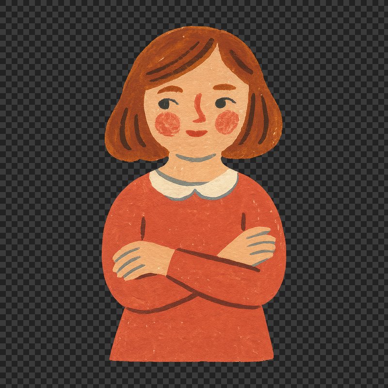 Illustrated girl with crossed arms. https://www.rawpixel.com/image/24856686/illustrated-girl-with-crossed-armsView license