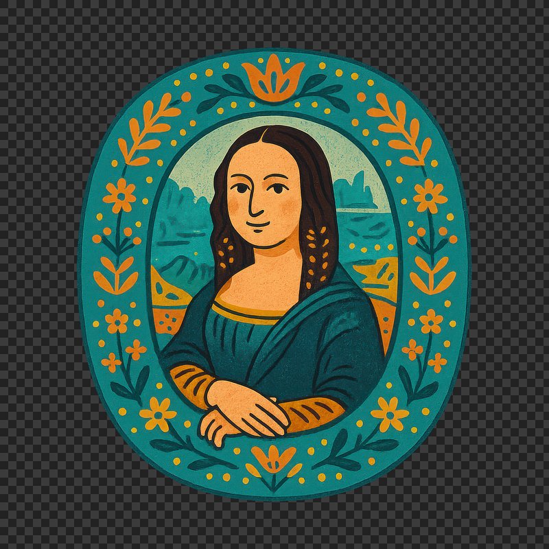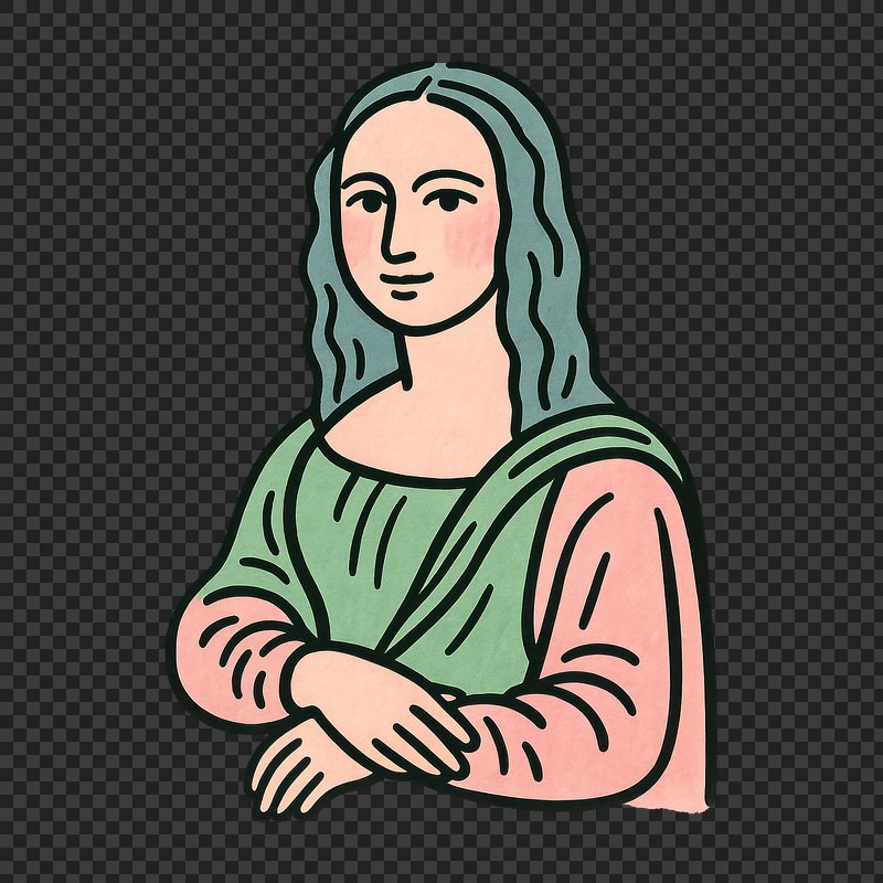 PNG Colorful cartoon Mona Lisa illustration. https://www.rawpixel.com/image/22128896/png-colorful-cartoon-mona-lisa-illustrationView license