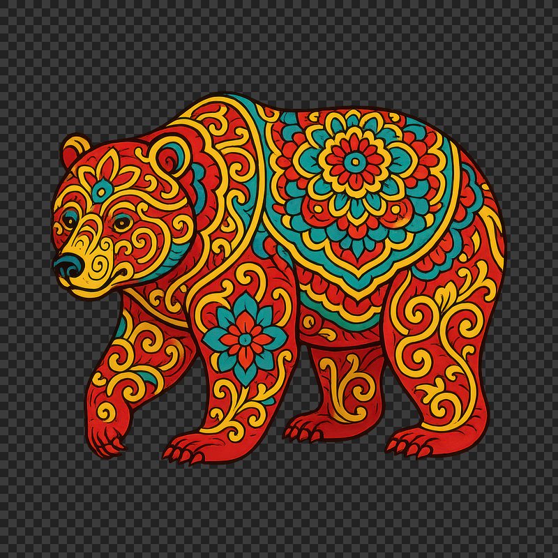 PNG Colorful ornate bear illustration https://www.rawpixel.com/image/20686712/png-colorful-ornate-bear-illustrationView license