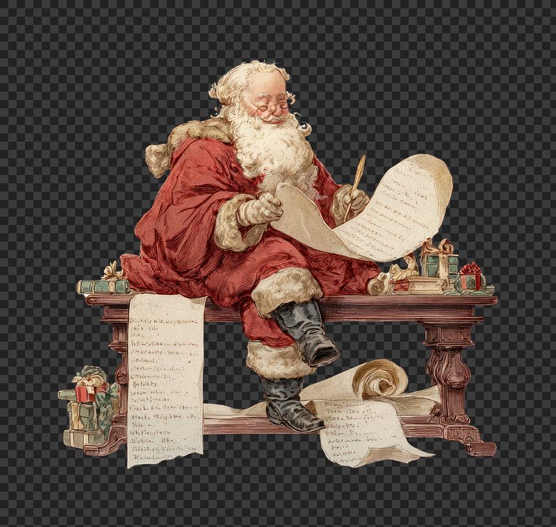 PNG Santa checking list illustration https://www.rawpixel.com/image/22936596/png-santa-checking-list-illustrationView license