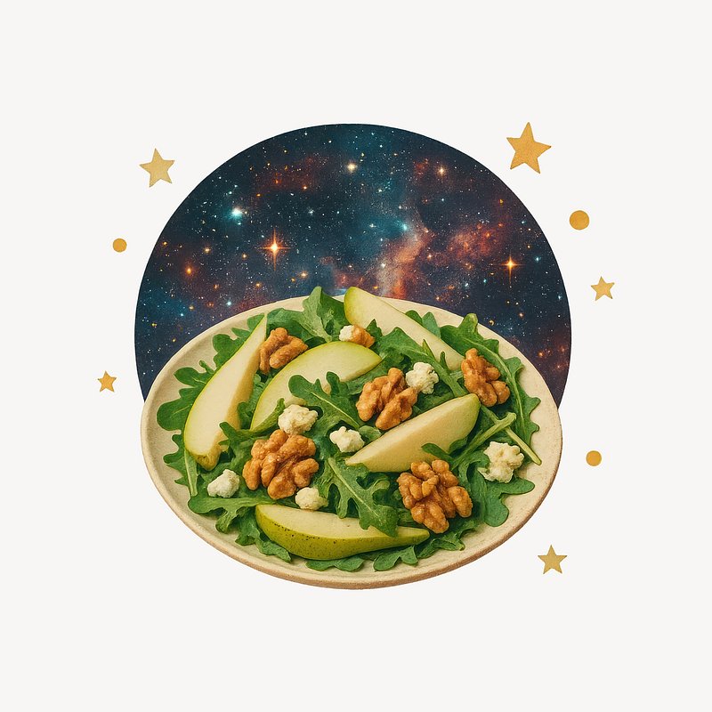 Cosmic salad with pear and walnuts. https://www.rawpixel.com/image/24358198/cosmic-salad-with-pear-and-walnutsView license