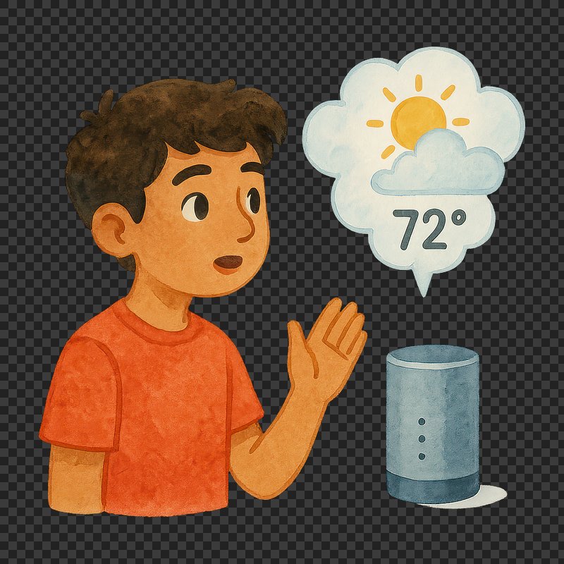 Voice assistant checks weather. https://www.rawpixel.com/image/20671255/voice-assistant-checks-weatherView license