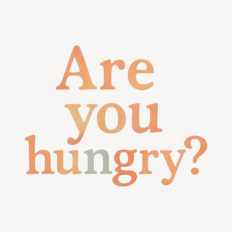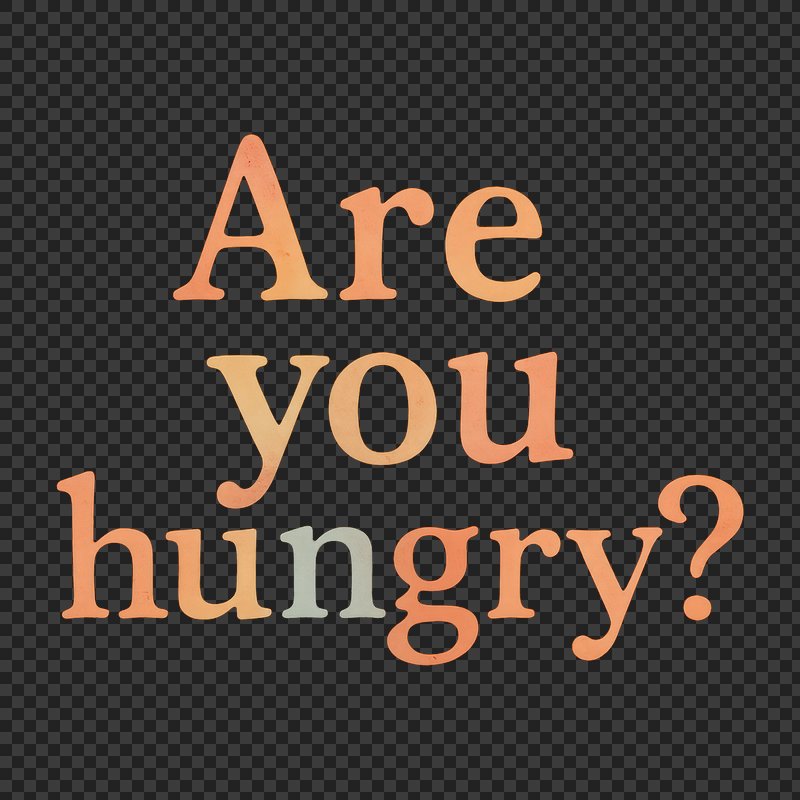 Playful text asking about hunger. https://www.rawpixel.com/image/20675686/playful-text-asking-about-hungerView license