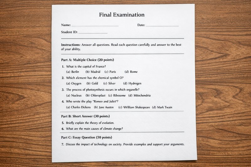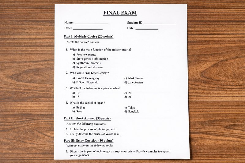 Final exam paper on desk https://www.rawpixel.com/image/25145845/final-exam-paper-deskView license
