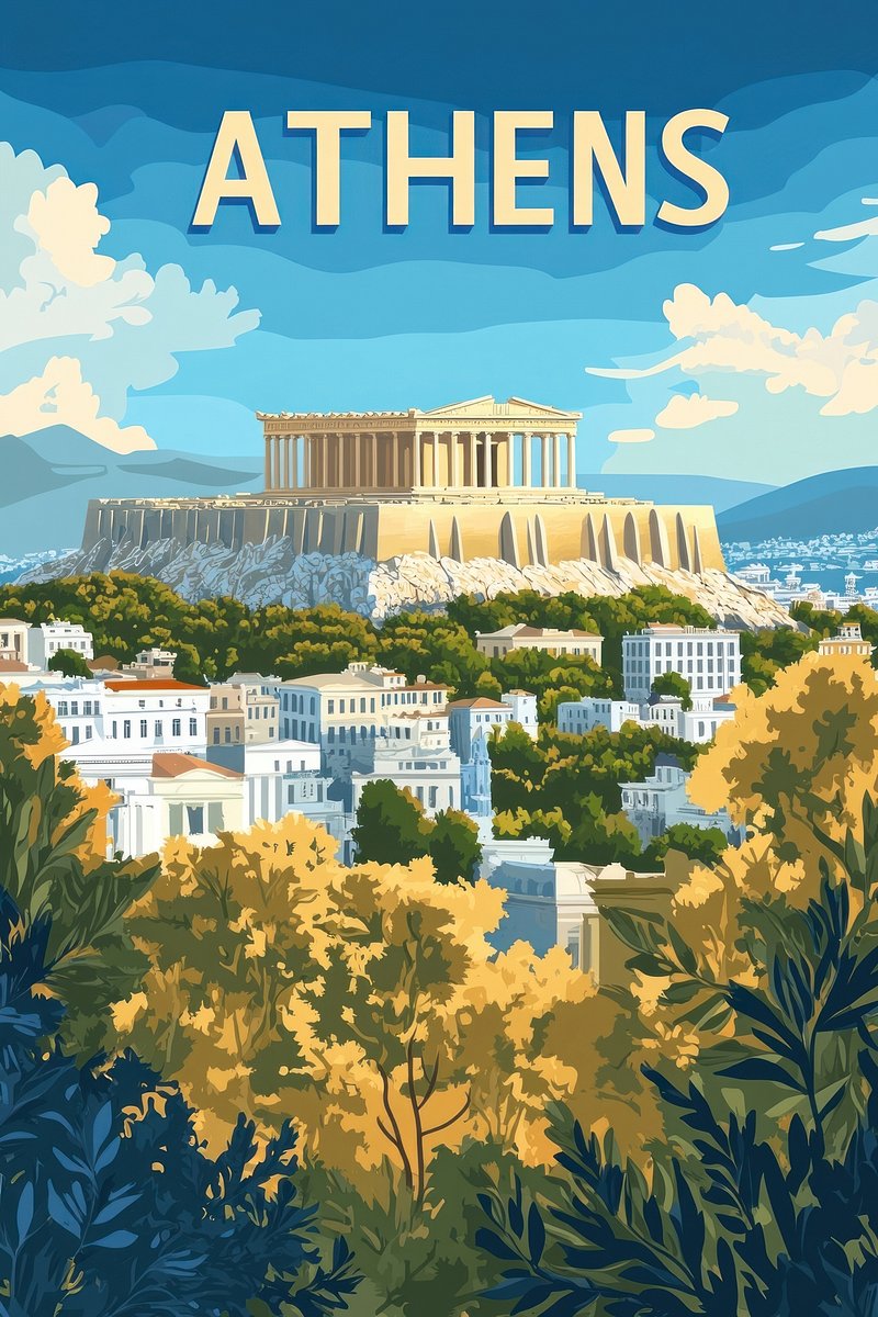 Retro poster with a Acropolis of Athens architecture illustration building vector https://www.rawpixel.com/image/17600917/vector-background-scenery-artView license