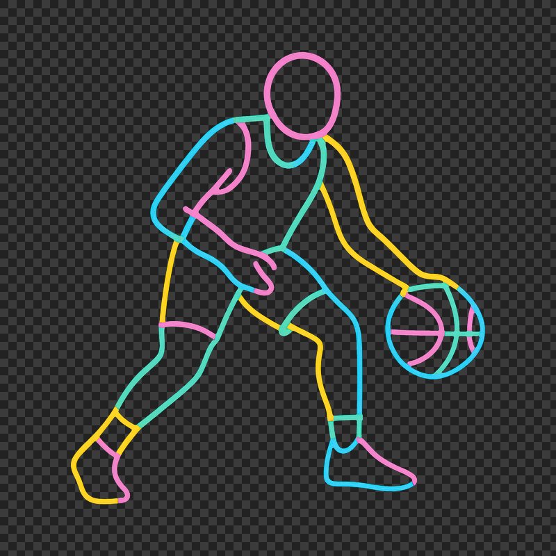 PNG Colorful neon basketball player illustration. https://www.rawpixel.com/image/22150295/png-colorful-neon-basketball-player-illustrationView license