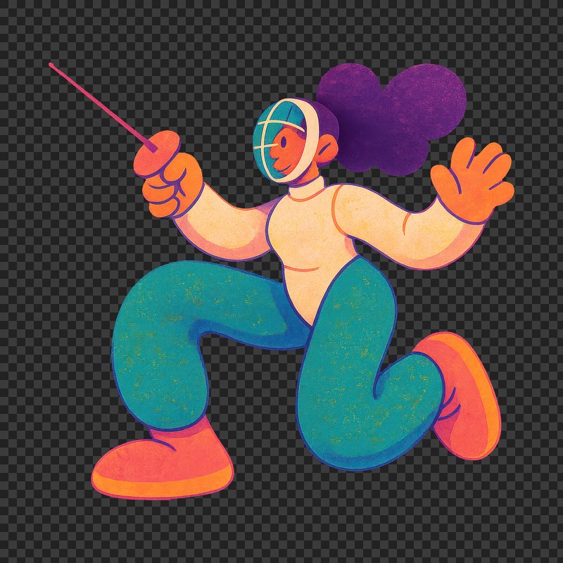 PNG Colorful fencing character illustration. https://www.rawpixel.com/image/21642419/png-colorful-fencing-character-illustrationView license