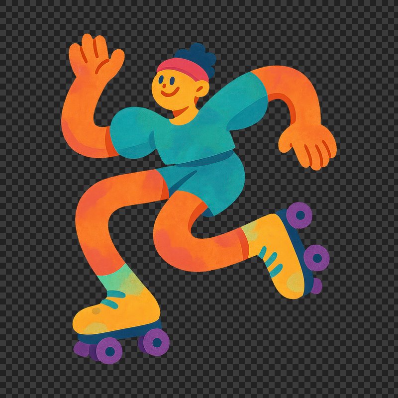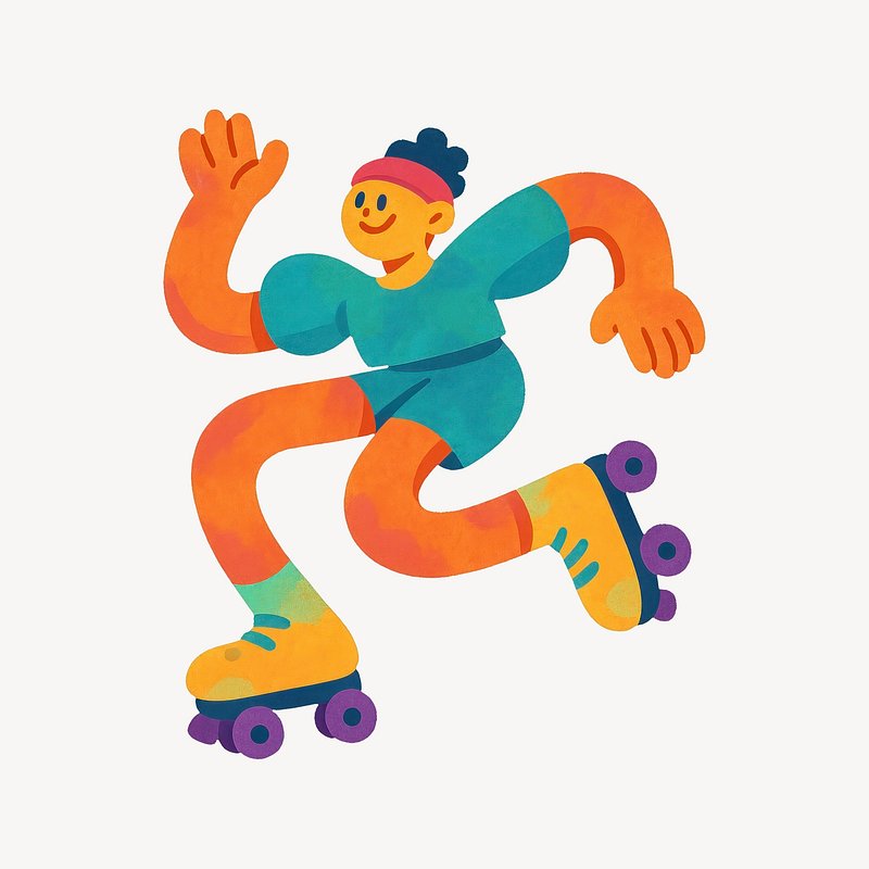 Colorful roller skating character https://www.rawpixel.com/image/21794546/colorful-roller-skating-characterView license