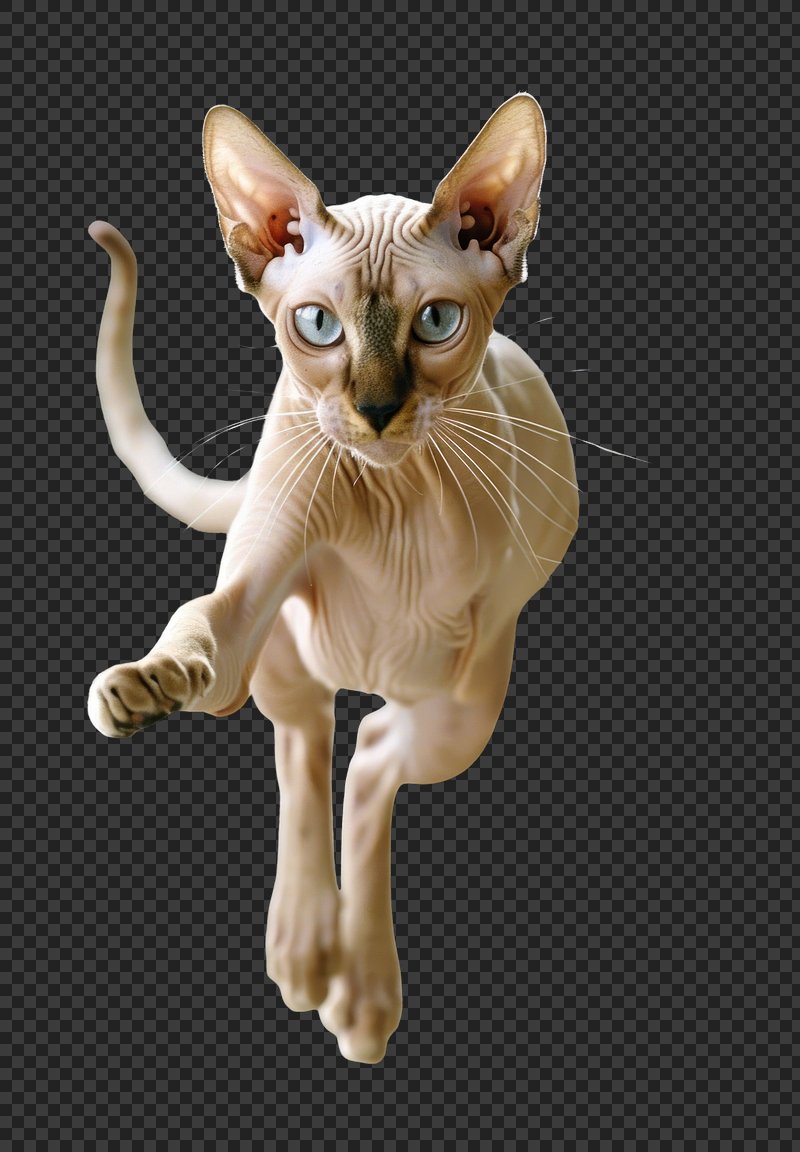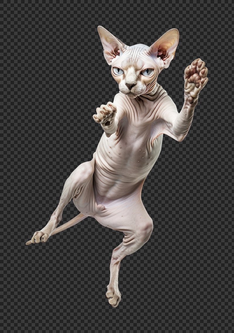 PNG Energetic Sphynx cat leaping gracefully. https://www.rawpixel.com/image/23431099/png-energetic-sphynx-cat-leaping-gracefullyView license