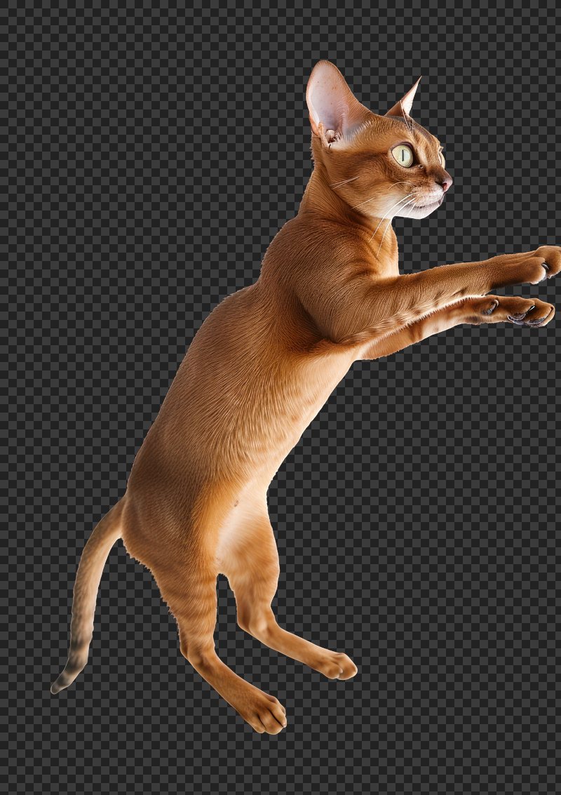 PNG Energetic Abyssinian cat jumping gracefully. https://www.rawpixel.com/image/23431189/png-energetic-abyssinian-cat-jumping-gracefullyView license