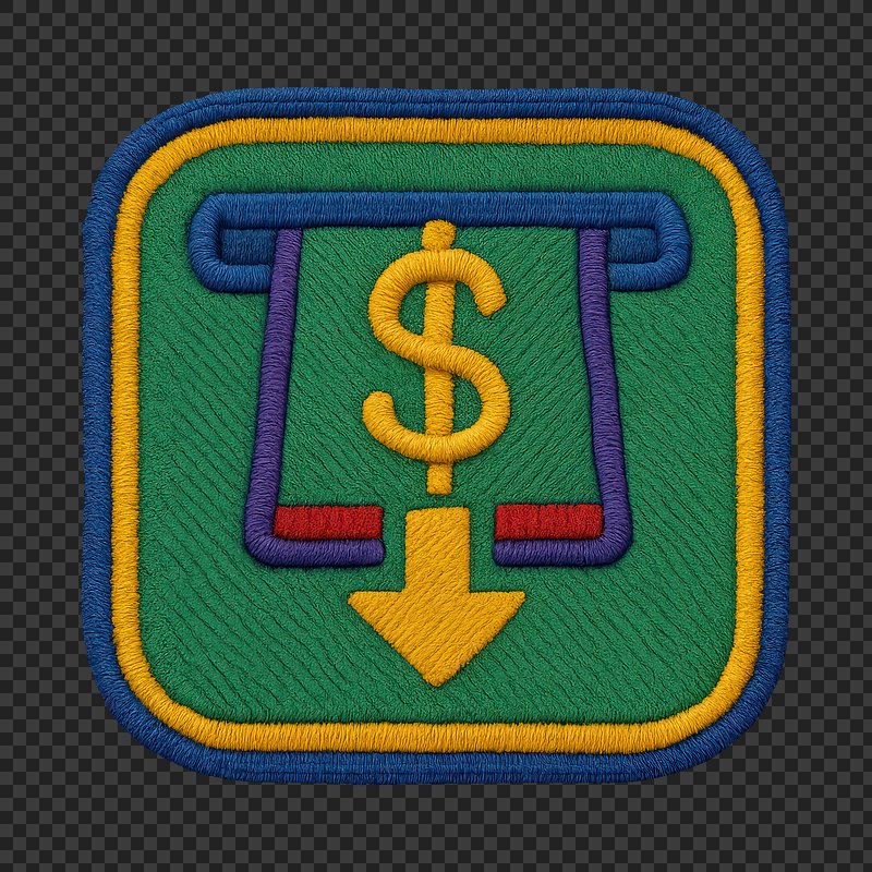PNG Colorful embroidered ATM patch https://www.rawpixel.com/image/21265221/png-colorful-embroidered-atm-patchView license