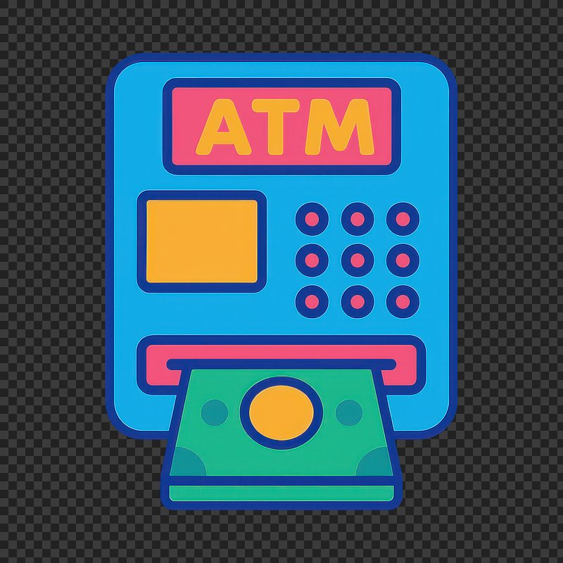 PNG Colorful ATM machine illustration. https://www.rawpixel.com/image/23193478/png-colorful-atm-machine-illustrationView license