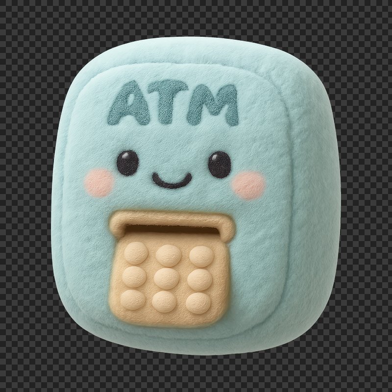 PNG Cute plush ATM illustration https://www.rawpixel.com/image/23868320/png-cute-plush-atm-illustrationView license