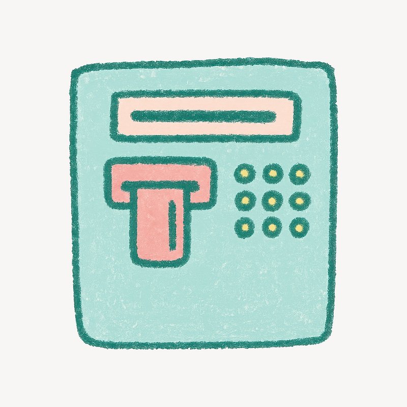 Hand-drawn ATM machine illustration. https://www.rawpixel.com/image/22042656/hand-drawn-atm-machine-illustrationView license