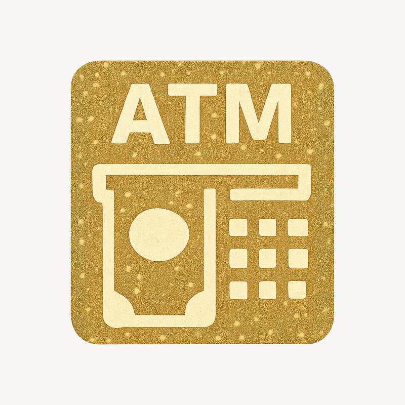 Gold ATM icon illustration. https://www.rawpixel.com/image/22848979/gold-atm-icon-illustrationView license