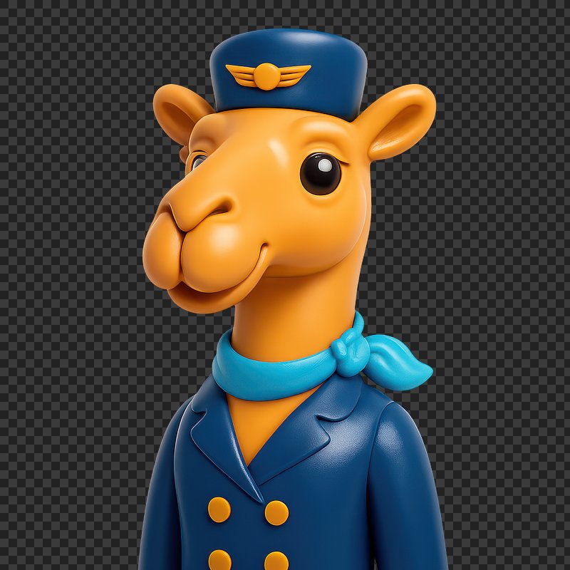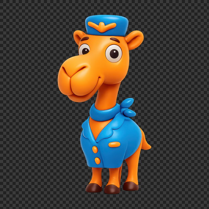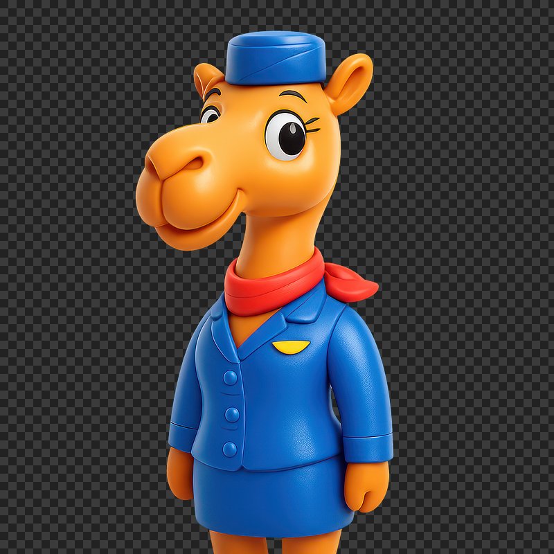 PNG Cartoon camel flight attendant figure. https://www.rawpixel.com/image/17930278/png-cartoon-camel-flight-attendant-figureView license