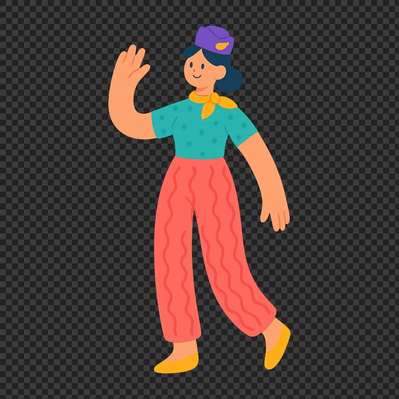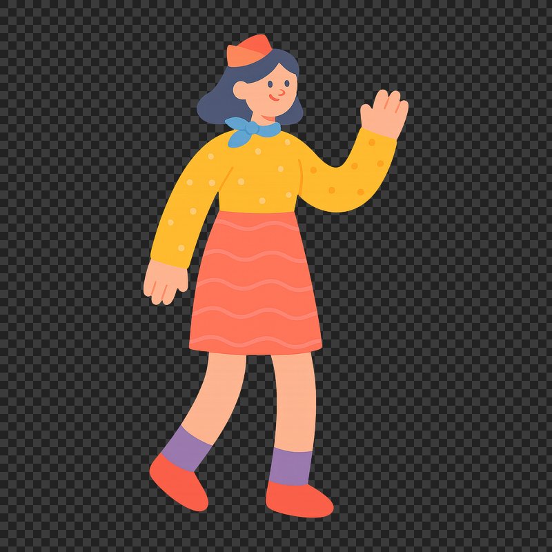 PNG Friendly cartoon flight attendant waving. https://www.rawpixel.com/image/18625110/png-friendly-cartoon-flight-attendant-wavingView license