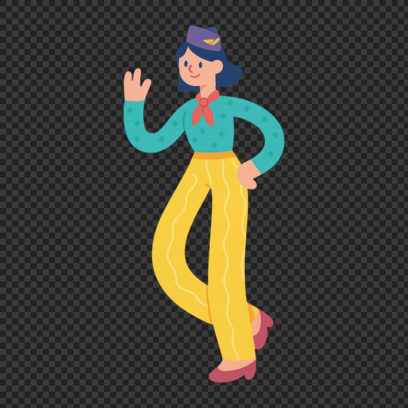 PNG Cartoon flight attendant waving https://www.rawpixel.com/image/18625107/png-cartoon-flight-attendant-wavingView license