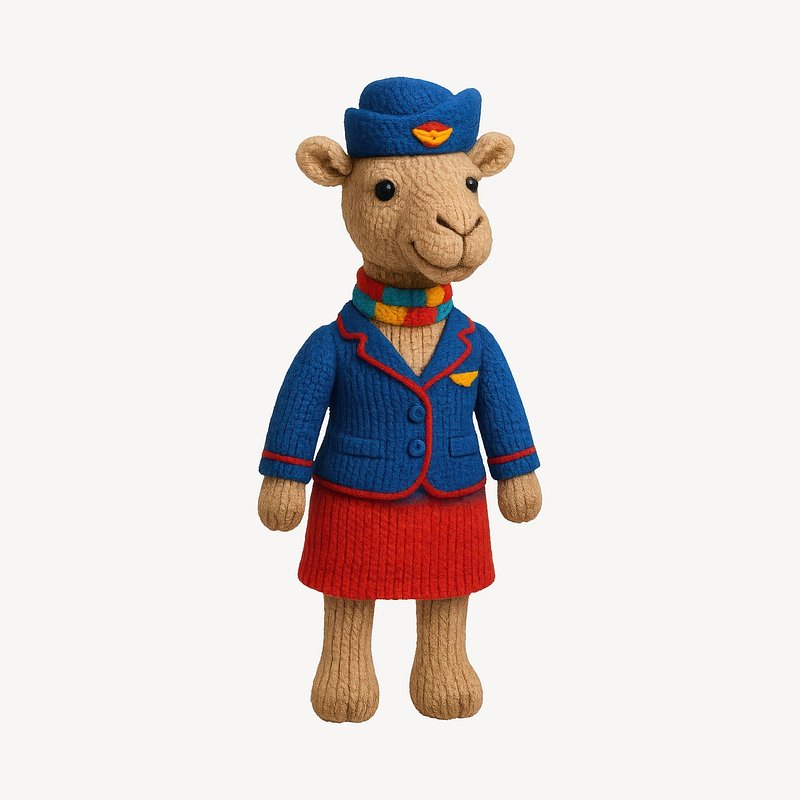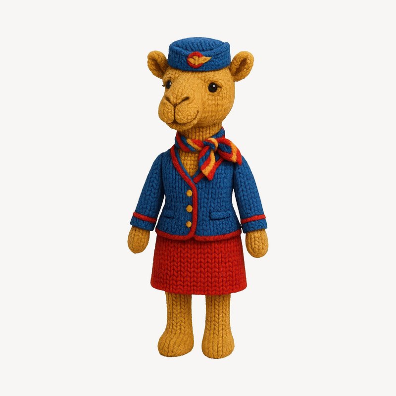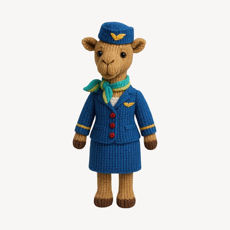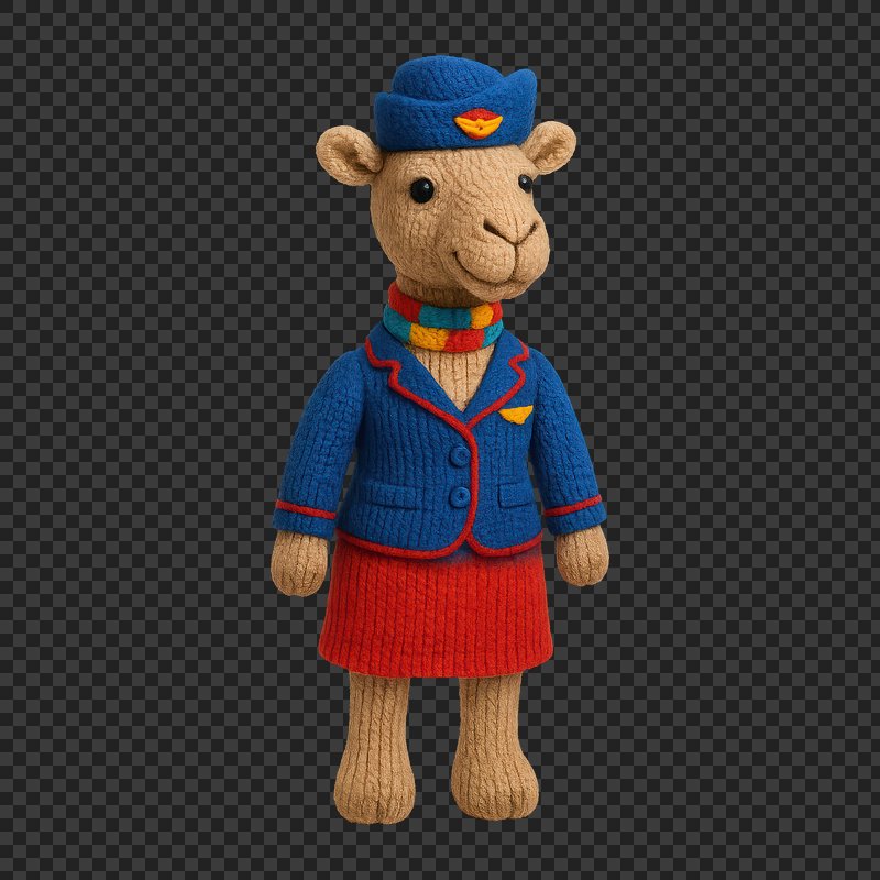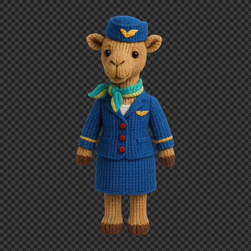 Knitted camel flight attendant toy. https://www.rawpixel.com/image/24530288/knitted-camel-flight-attendant-toyView license