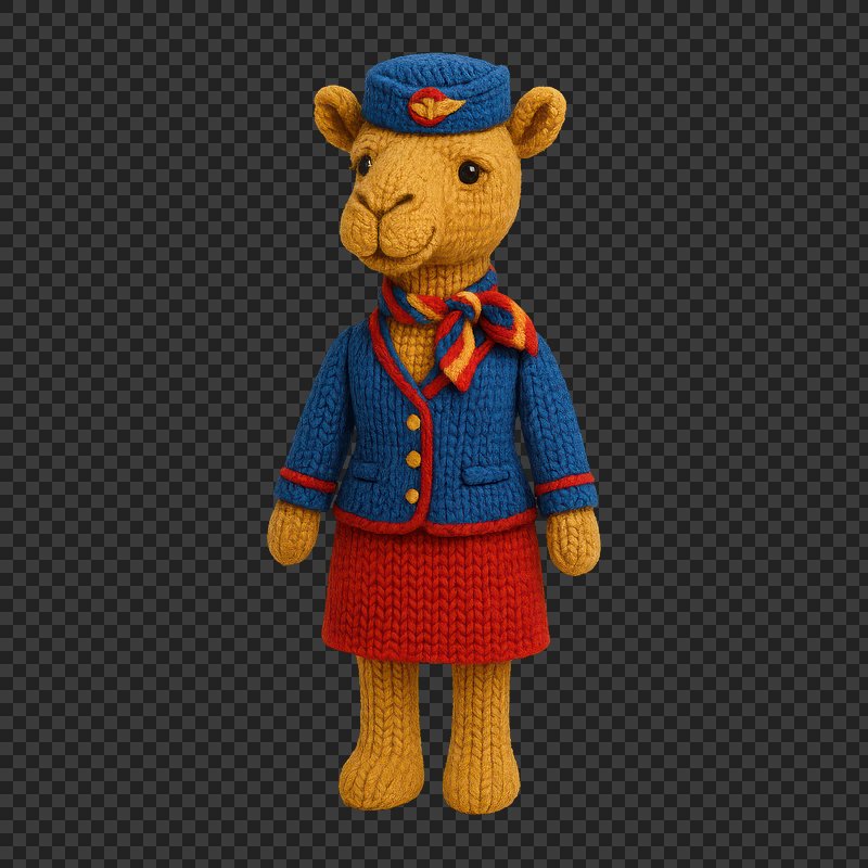 PNG Knitted camel flight attendant toy. https://www.rawpixel.com/image/24444064/png-knitted-camel-flight-attendant-toyView license