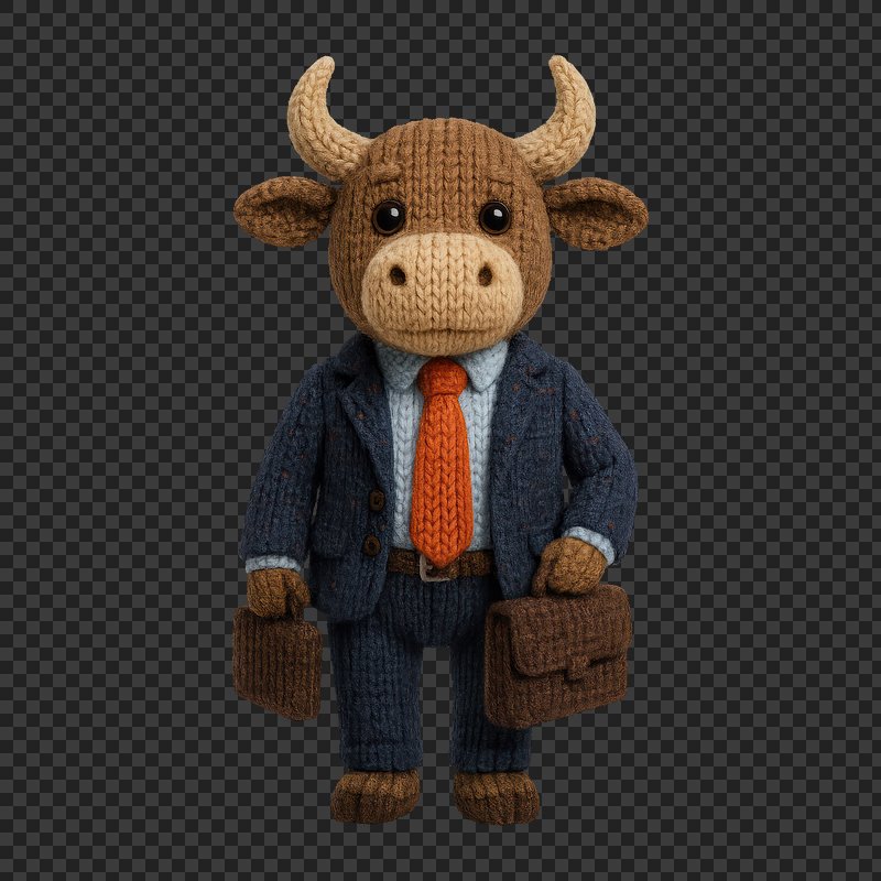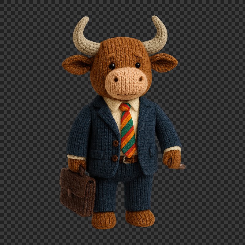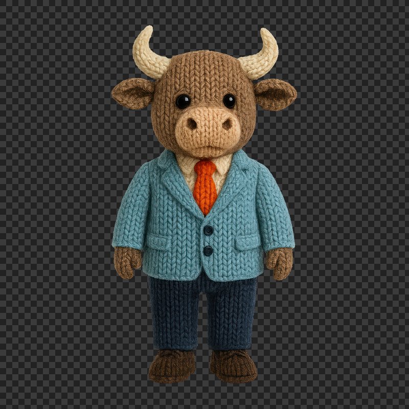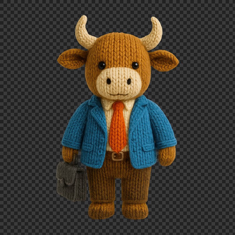 PNG Knitted bull in business attire. https://www.rawpixel.com/image/24445794/png-knitted-bull-business-attireView license