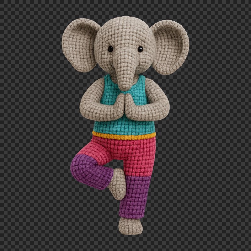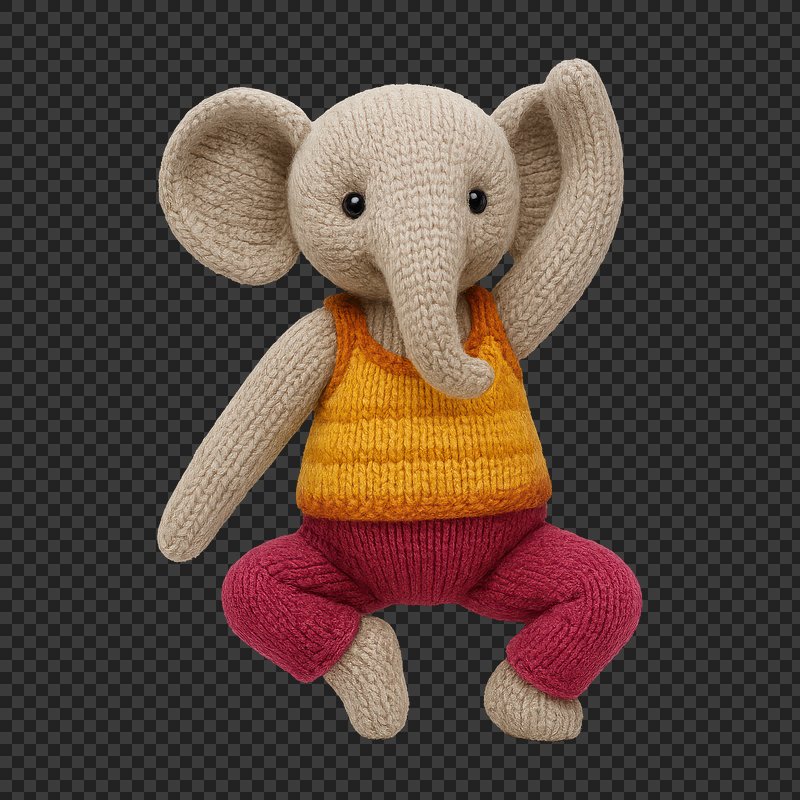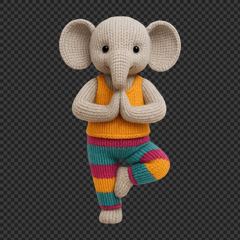 PNG Knitted elephant doing yoga pose. https://www.rawpixel.com/image/24444974/png-knitted-elephant-doing-yoga-poseView license