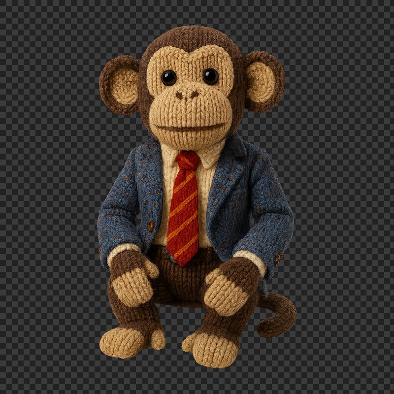 PNG Knit monkey toy in suit. https://www.rawpixel.com/image/24474087/png-knit-monkey-toy-suitView license