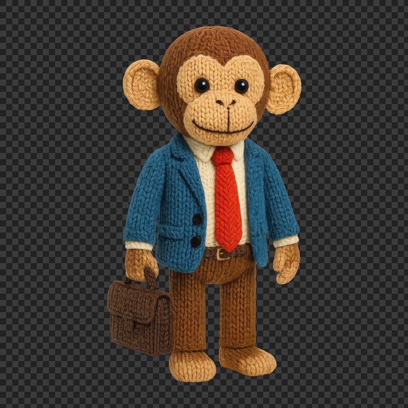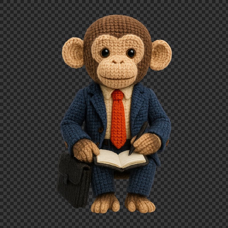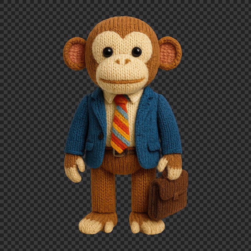 PNG Knitted monkey in business attire. https://www.rawpixel.com/image/24474088/png-knitted-monkey-business-attireView license