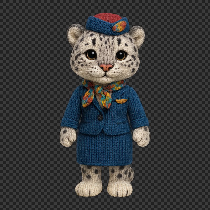 PNG Cute knitted leopard stewardess illustration. https://www.rawpixel.com/image/24520994/png-cute-knitted-leopard-stewardess-illustrationView license