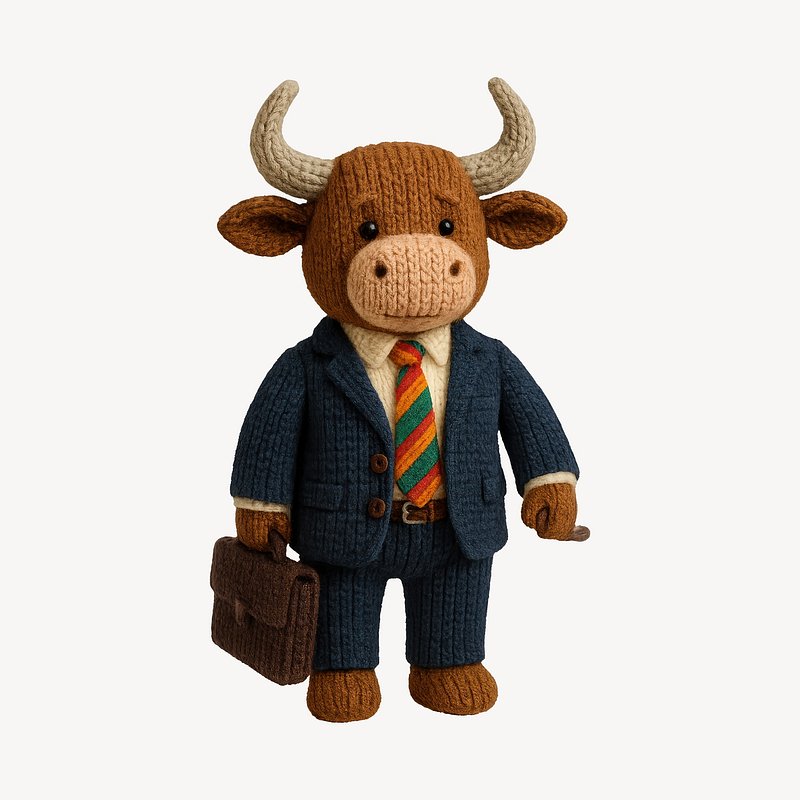 Knitted bull in business attire. https://www.rawpixel.com/image/24532614/knitted-bull-business-attireView license