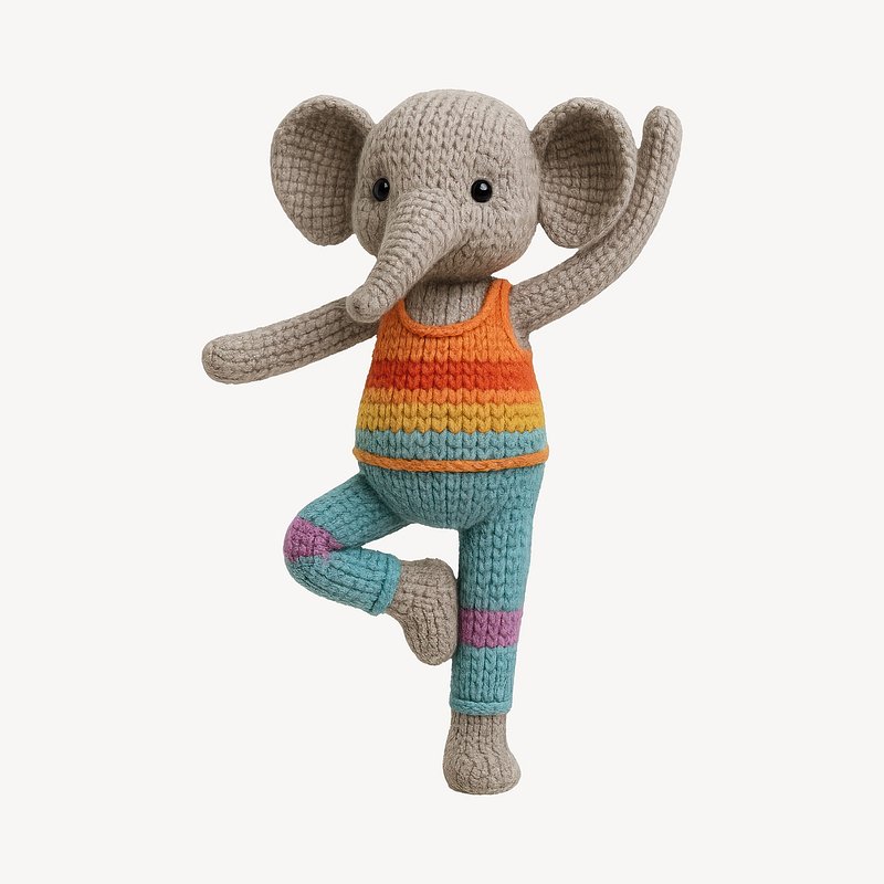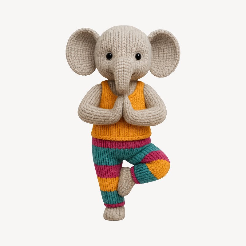 Knitted elephant doing yoga pose. https://www.rawpixel.com/image/24531464/knitted-elephant-doing-yoga-poseView license