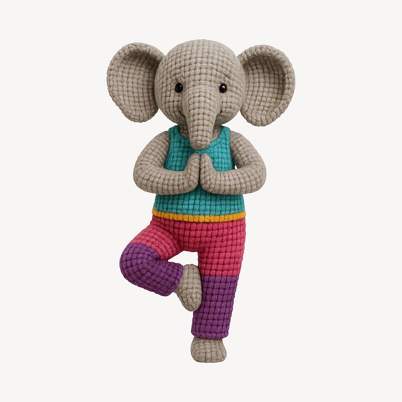 Crochet elephant practicing yoga. https://www.rawpixel.com/image/24532908/crochet-elephant-practicing-yogaView license
