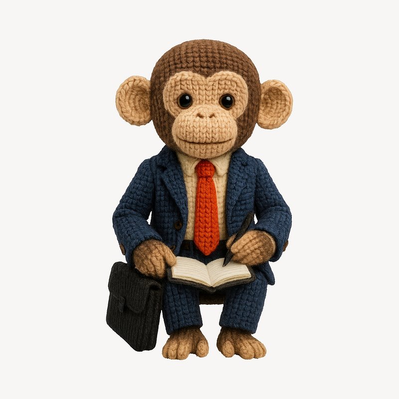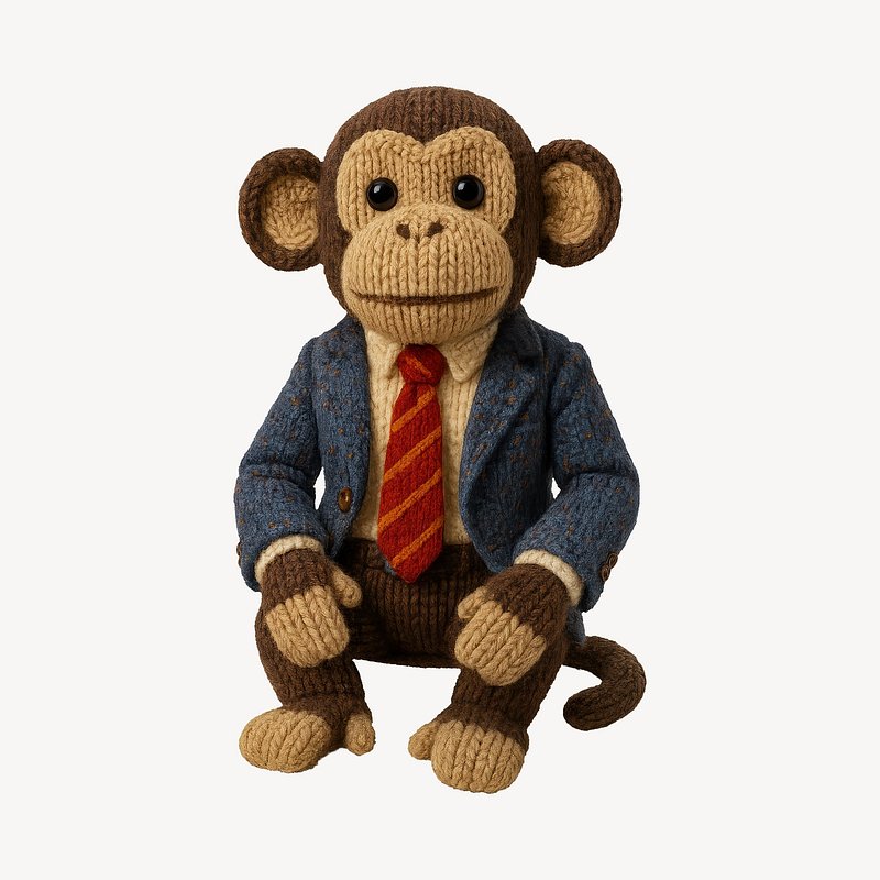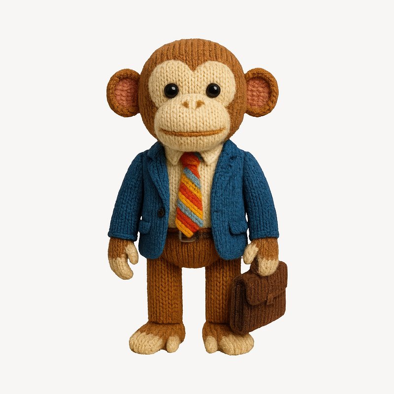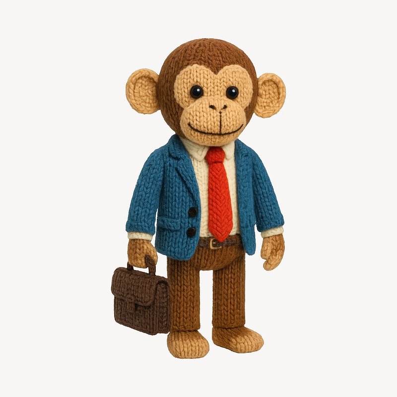 Knitted monkey in business attire. https://www.rawpixel.com/image/24657410/knitted-monkey-business-attireView license
