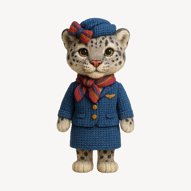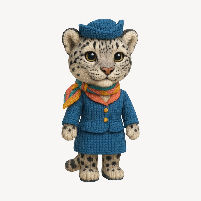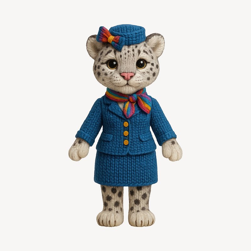 Cute knitted leopard stewardess illustration. https://www.rawpixel.com/image/24604783/cute-knitted-leopard-stewardess-illustrationView license