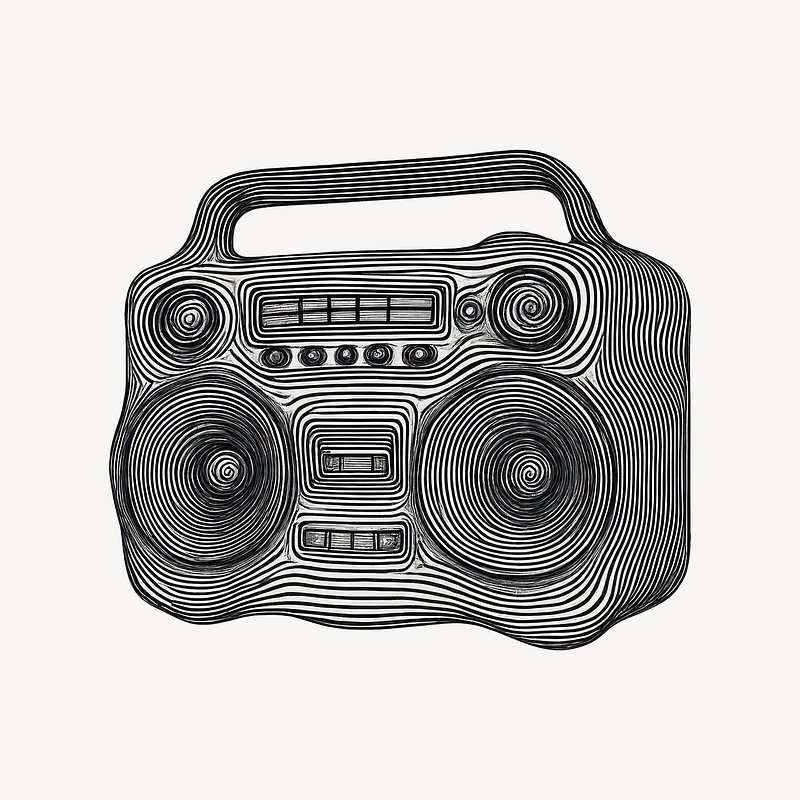 Retro boombox line art illustration. https://www.rawpixel.com/image/24667601/retro-boombox-line-art-illustrationView license