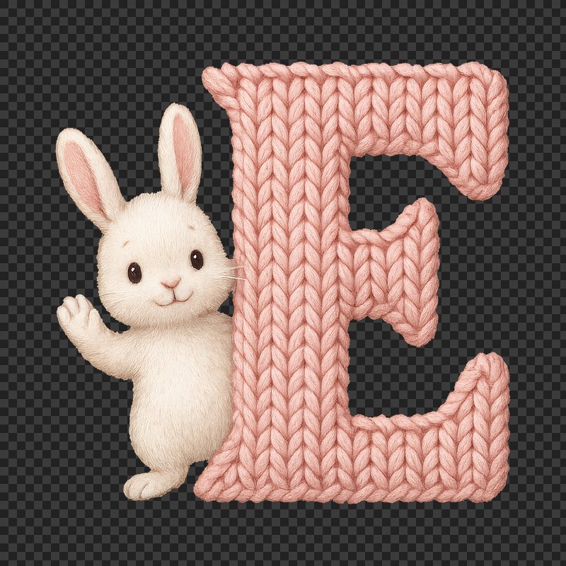 PNG Knitted letter E bunny https://www.rawpixel.com/image/24203095/png-knitted-letter-bunnyView license