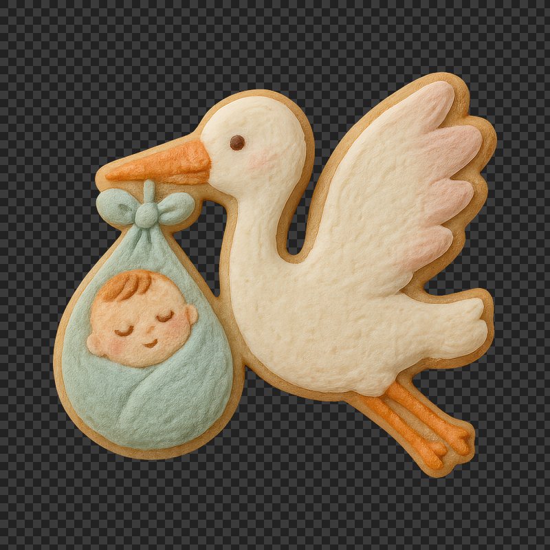 PNG Stork cookie with baby bundle. https://www.rawpixel.com/image/24602481/png-stork-cookie-with-baby-bundleView license